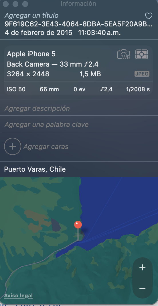 Fig. 8.1 Información oculta en metadatos de una fotografía. Cualquiera puede ver estos datos si no los eliminas antes de compartir la imagen.#